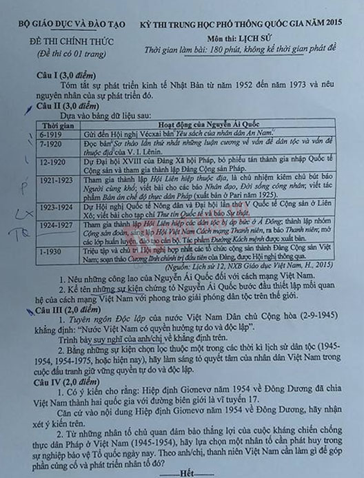 Đề thi THPT quốc gia năm 2015 môn Lịch Sử